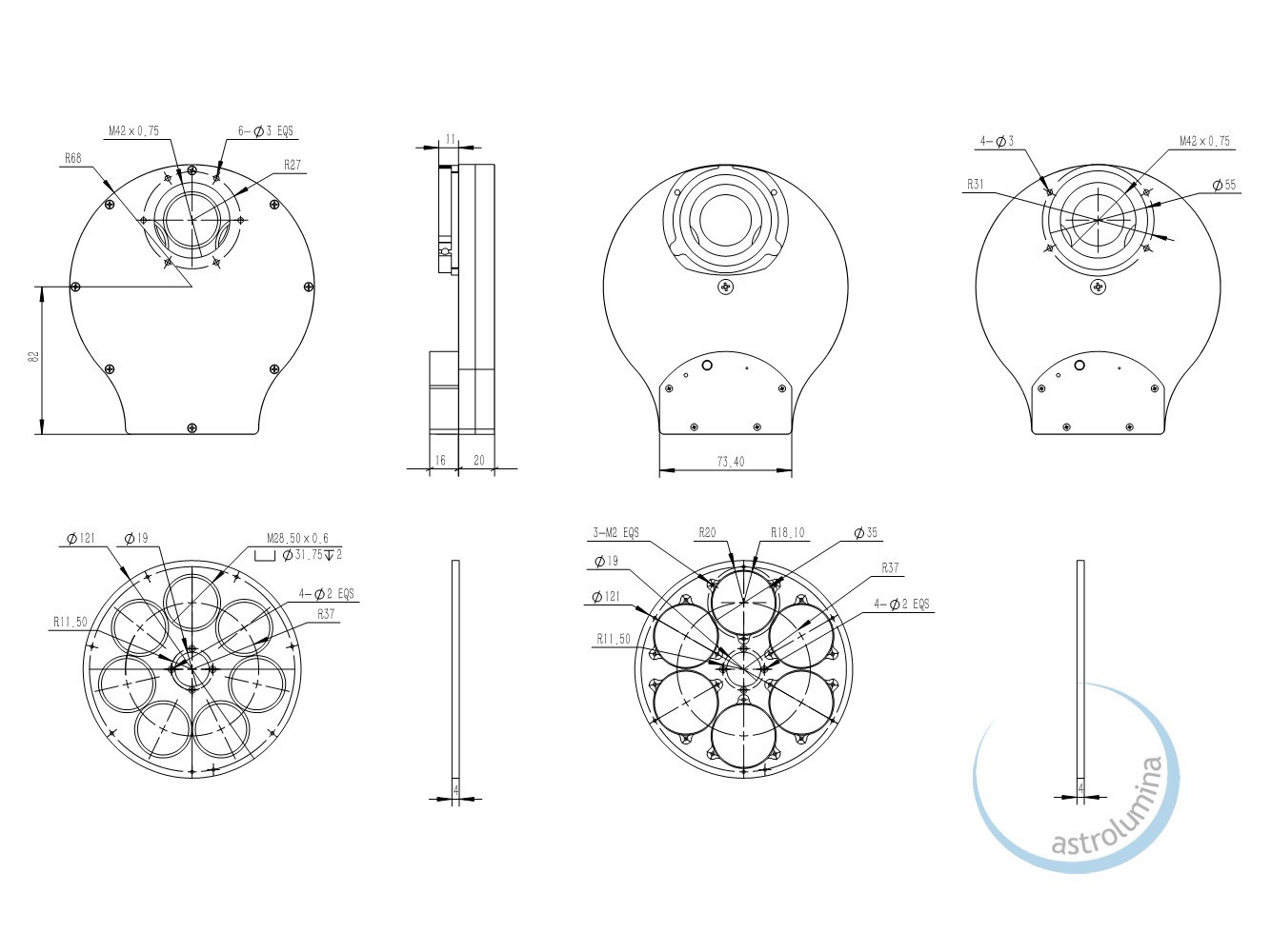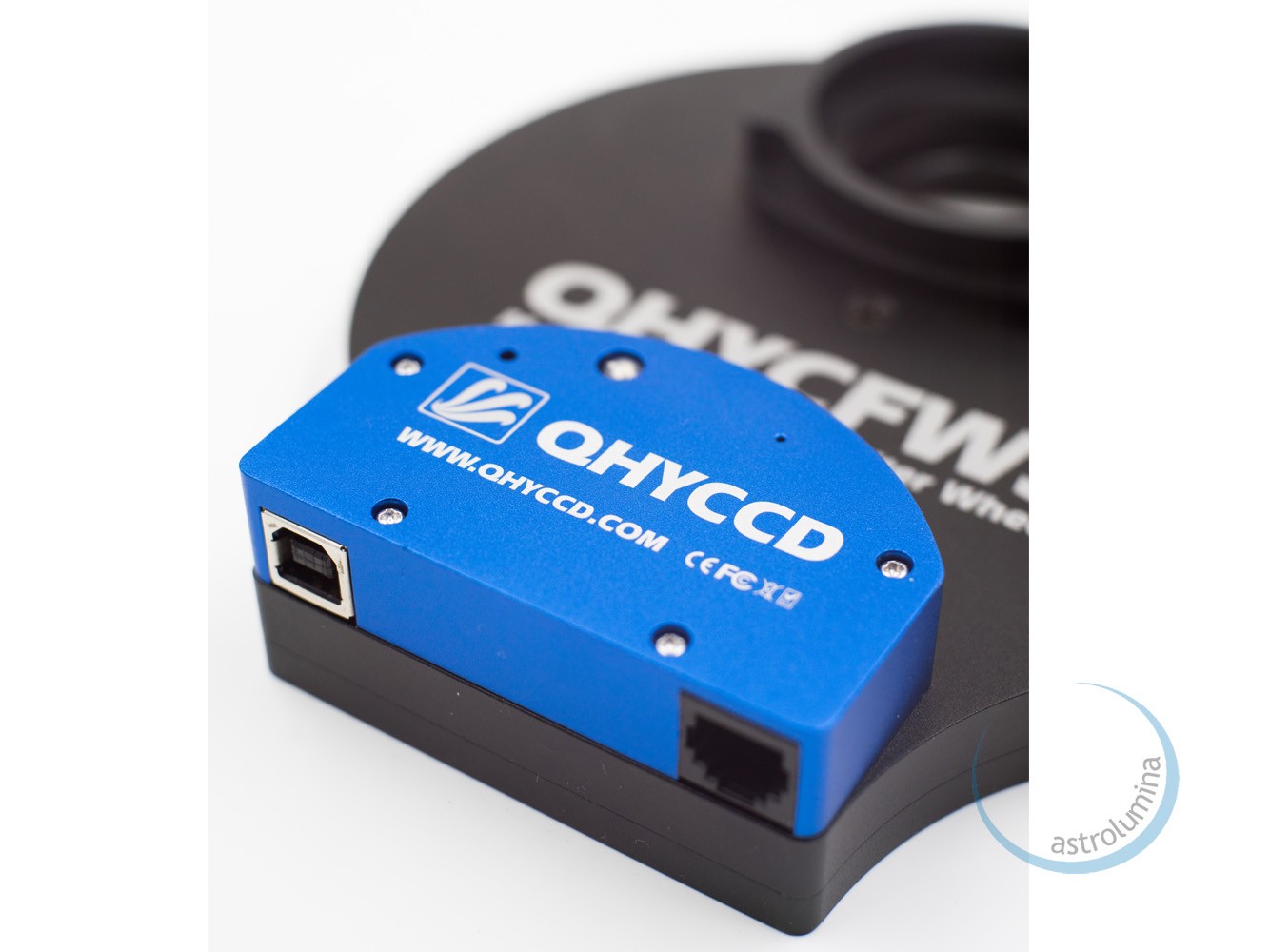 Das ALccd-QHY CFW3S-Filterrad ist vorgesehen zur Aufnahme von 6 Stück 36mm-Einlegefilter (CFW3S-US) oder 7 Stück 1.25 inch Schraubfilter (CFW3S-SR). Das gewünschte Modell können Sie im Bestellablauf auswählen.Beide Anschlussgewinde sind M42x0,75mm (T2-Gewinde), so dass keine Abschattungen auftreten können. Das Filterradmodell CFW3S-US gehört zu den flachsten und leichtesten motorischen 36mm-Rädern. Es hat ein Dicke von nur 15,5mm (ohne Steckadapter) und wiegt lediglich 419g (CFW3S-US inkl. Steckadapter). Eine komplett ausgestattete ALccd-QHY 9 wiegt somit keine 1.000g.Damit das Filterrad auch unabhängig von einer ALccd-QHY-Kamera betrieben werden kann, liefern wir es mit einem universellen USB-Anschluss und passendem Softwaretreiber aus.