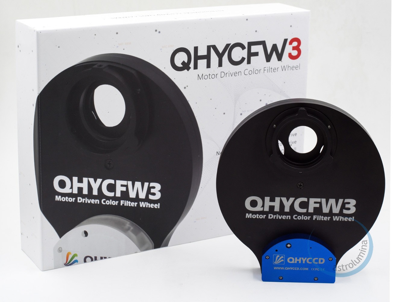 Die ALccd-QHY Filterräder der Serie 3 sind für die Astrofotografen gedacht, die mit einer monochromen Kamera, in Verbindung mit Filtern, zu Farbaufnahmen gelangen wollen.Sie erlauben den Einsatz von marktüblichen Filtern.Die CFW3-Filterräder sind die konsequente Weiterentwicklung der über Jahren bewährten Vorgänger der Serien 1 und 2. Sowohl das mechanische als auch das elektronische Design wurde zeitgemäß verbessert und angepasst.Sie verfügen über einen Kommunikationsport zur direkten Verbindung mit ALccd-QHY-Kameras (mit Filterradbuchse), aber selbstverständlich auch über eine USB-Schnittstelle für Fremdkameras, die neben der Datenkommunikation auch die Stromversorgung sicher stellt.Zudem gehören die ALccd-QHY Filterräder nach wie vor zu den kompaktesten, leichtesten aber dennoch stabilsten Filterrädern auf dem Markt.Die neuen ALccd-QHY CFW3 Filterräder sind in drei Größen erhältlich, schmal (CFW3S), mittel (CFW3M) und groß (CFW3L).