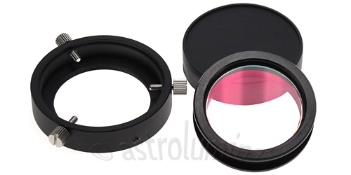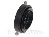 Adapter zur Rotation einer CCD-Kamera und zur Einstellung einer Verkippung und/oder einer Dezentrierung. Mit diesem Adapter können Sie fast jede Missstellung korrigieren.Beide Gewinde sind M42x0,75mm (T2). Das kameraseitige entsprechend ein Außen- und das teleskopseitige ein Innengewinde. Der Rotations-/Tiltadapter T2 kann somit an jeder x-beliebigen CCD-Kamera zum Einsatz kommen, welche über ein T2-Gewinde verfügt. Die drei im 120°-Winkel stehenden Rändelschrauben können Sie leicht lösen und den Adapter somit frei rotieren. Je nach dem wie weit Sie jede einzelne Schraube lösen, können Sie den nachfolgenden optischen Strahlengang zentrieren bzw. dezentrieren. Eine kleine spitz zulaufende Madenschraube ist für die Tilteinstellung zuständig. Je nach dem, wie weit diese Schraube in den Adapter hinein gedreht wird, desto stärker ist die Verkippung. Zur Tilteinstellung müssen Sie ganz leicht die drei großen Rändelschrauben lösen, gerade soviel, dass Sie den Adapter über die Madenschraube verkippen können.Ein UV-IR-Sperrfilter ist eingebaut.Das Auflagemaß (optische Weglänge) beträgt nur ca. 15,9mm und das Gewicht lediglich 70g.