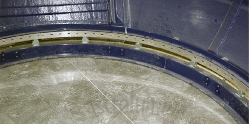 Kuppellaufkranz mit Laufrollen und Zahnprofilen